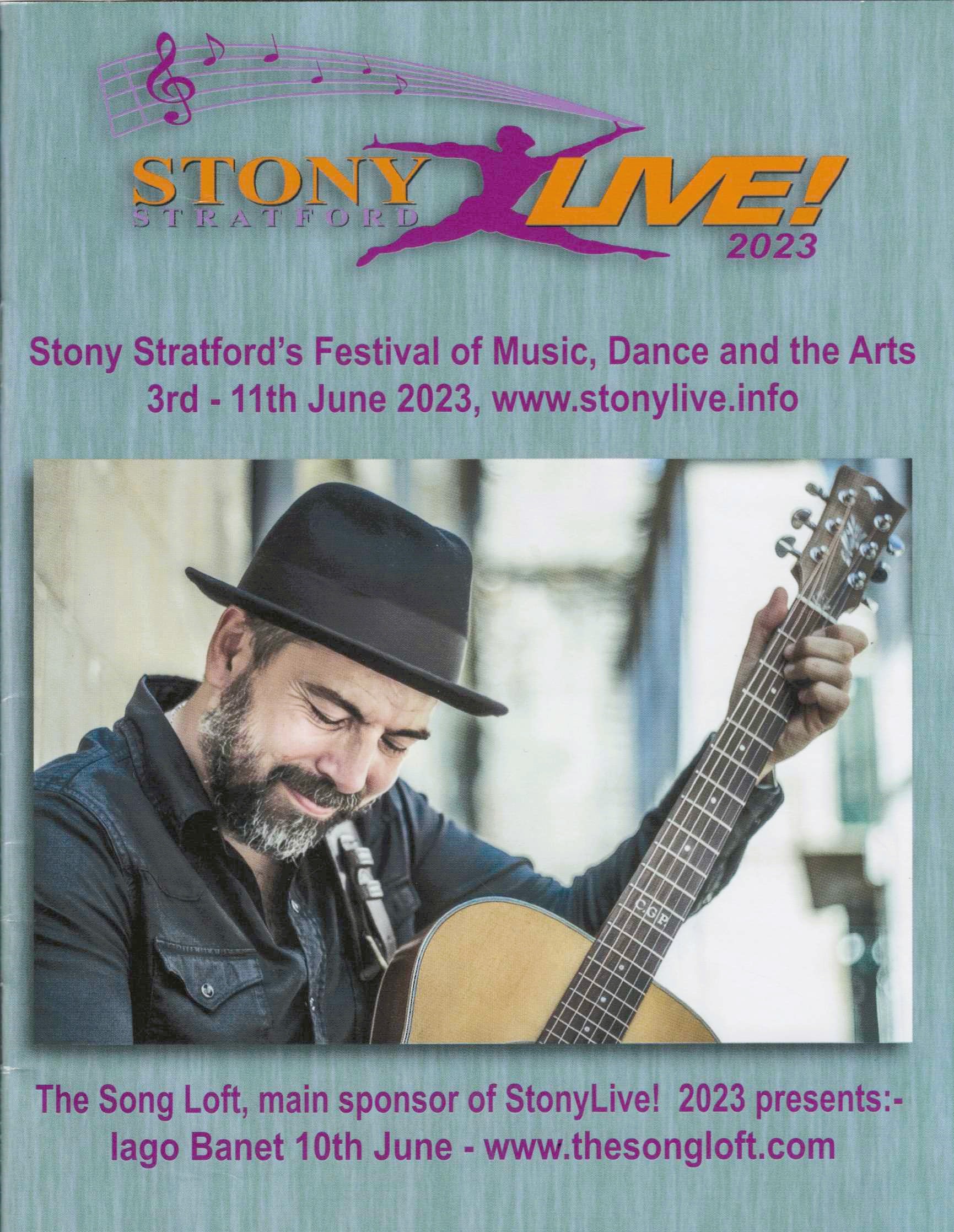 Performers’ Night 12th September 2025House Concert with Fran & Flora 10th June 2025O’Reely 21 March 2025Innocent Hare + Rob Gifford 17 January 2025Chris Ronald & Guy Fletcher 1 November 2024Buffalo Gals 20 September 2024Peggy Seeger in Conversation 8 June 2024Songs of the Folk 3 May 2024Dancing is permittedThe Celtic Spaceship 19 April 2024The Wilderness Yet 15 March 2024Kites Collective 19 January 2024The Sandy Denny Project 15 December 2023Stu Hanna of Megson 17 November 2023Karen Pfeiffer and Paul Walker 3 November 2023Track Dogs 20 October 2023Wayward Jane 15 September 20232023 – The Year that The Song Loft sponsored The Stony Live Festival – the front cover of the programme featured Iago BanetThree Inch Fools perform As You Like It in York House gardens 20 May 2023Jack in a Barrel – 6 part harmony group – at a Performers’ Night 5 May 2023 Boot Heel Playboys 21 April 2023